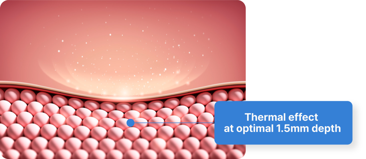 To address the loss of collagen that begins in the mid-20s at a rate of 1% per year,  Sofwave precisely delivers 12MHz of powerful energy to a depth of 1.5mm. This 1.5mm layer is the key zone where wrinkles form. Unlike conventional 3–4.5mm treatments, it targets only the upper dermis, avoiding damage to nerves and fat layers—effectively preventing volume loss.