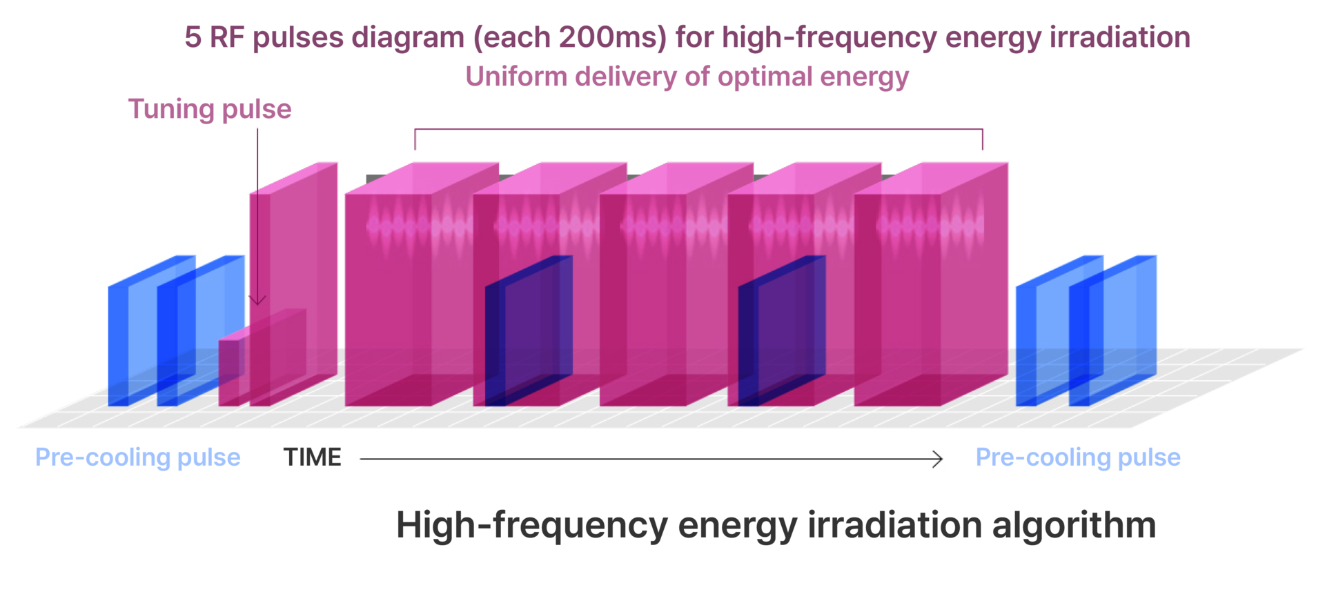 through precise radiofrequency energy delivery. Customized treatment by area possible with automatic algorithm,