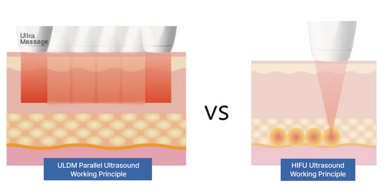 ULDM parallel ultrasound delivers high-density ultrasound energy to the dermis without thermal damage, causing minimal discomfort while stimulating collagen regeneration.